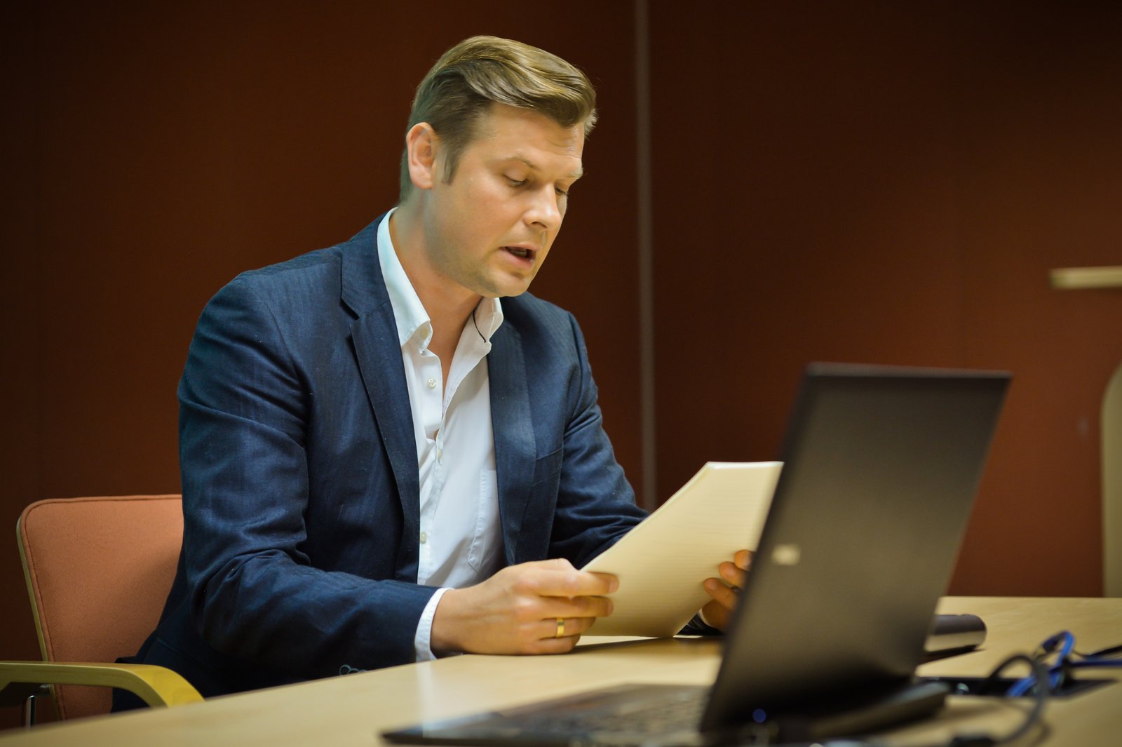 4. Odczyt fragmentów zwycięskiego utworu przez aktora Szymona Sędrowskiego